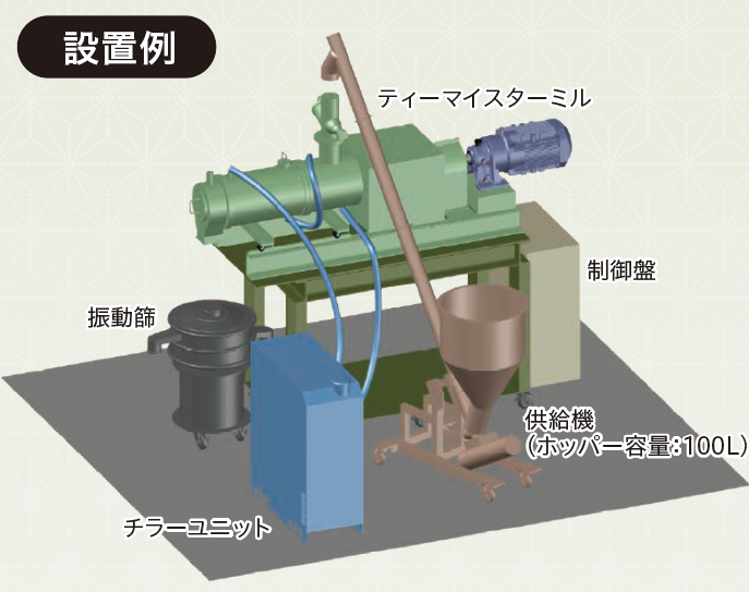 茶葉粉砕用連続式乾式ボールミル「ティーマイスターミル」は連続型乾式ボールミルを茶葉粉砕用に特化した粉砕機です。