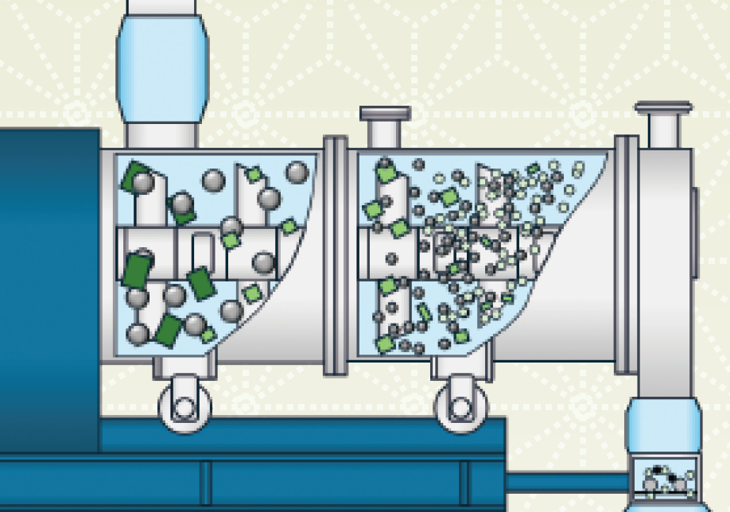ツインタンクで粗粉砕と微粉砕をひとつのタンクで通常は同一サイズのボールを用いて粉砕しますが、粗粉砕と微粉砕を同時に行うツインタンク仕様で2種類のサイズのボールを用いて粉砕が可能です。これにより幅広い品種茶葉を1台の粉砕機で処理することができます。
