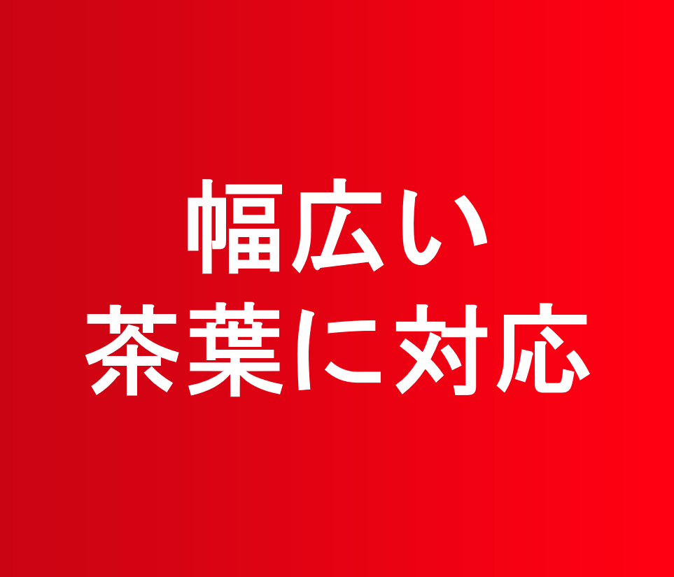 一般的な碾茶(一番茶、二番茶)をはじめ、従来加工が難しかった秋碾、モガ、ほうじ茶、煎茶など、多品種な茶葉の微粉砕が可能です。